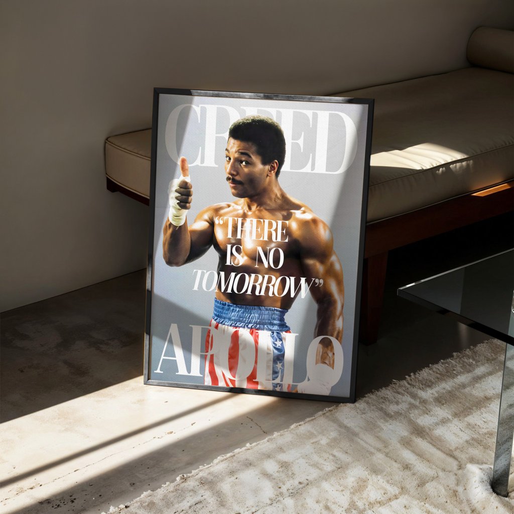 „There is no tomorrow!“ 💥🔥 Jedna věta, která změnila trénink Rockymu… a může změnit i tvůj mindset. Tento ikonický plakát s Apollem Creedem není jen poctou legendární postavě, ale také každodenní připomínkou, že dnes je ten den, kdy máš zabrat naplno. 💪🏾🥊