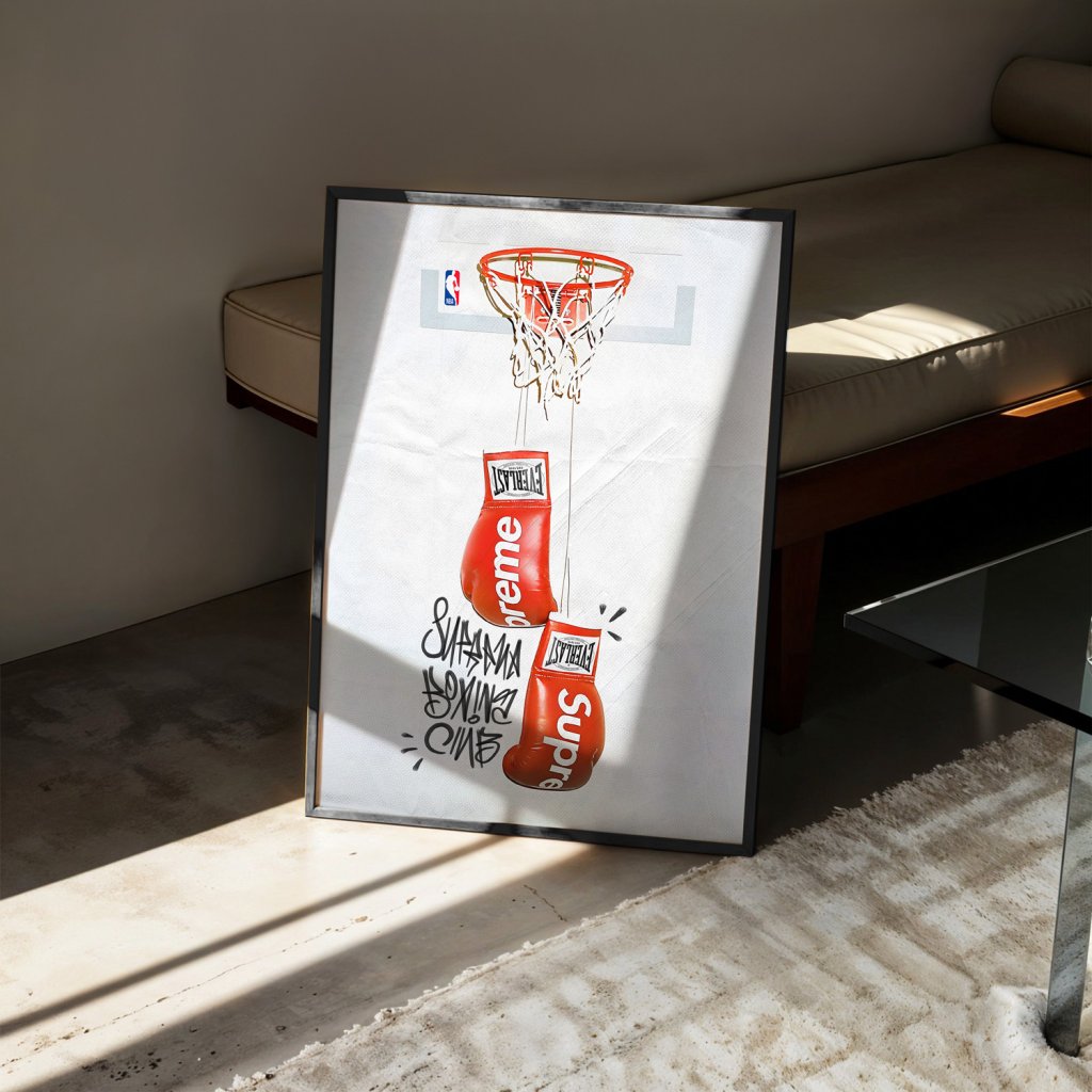 Stylová kombinace boxerských rukavic Supreme, basketbalového koše a graffiti nese jasné poselství: „Pain is temporary, victory is forever.“ Překonávej překážky, makej na sobě a nikdy to nevzdávej – protože vítězství zůstává navždy.