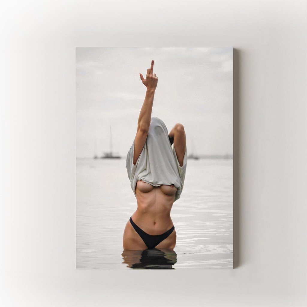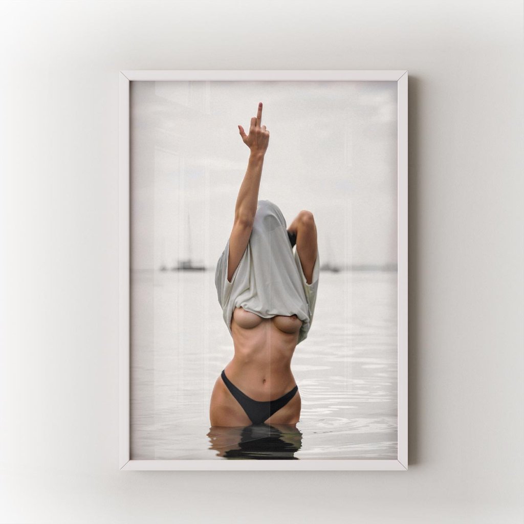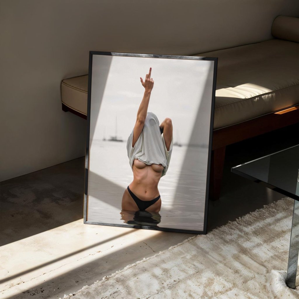 Tento plakát není jen o postoji, ale i o přitažlivosti. Kombinuje smyslnost s odvahou a sebevědomím – výzva, ironie a sex appeal v jednom záběru. Prostorově čistý a výrazově silný plakát, který přitáhne pohled a řekne vše za tebe – beze slov.