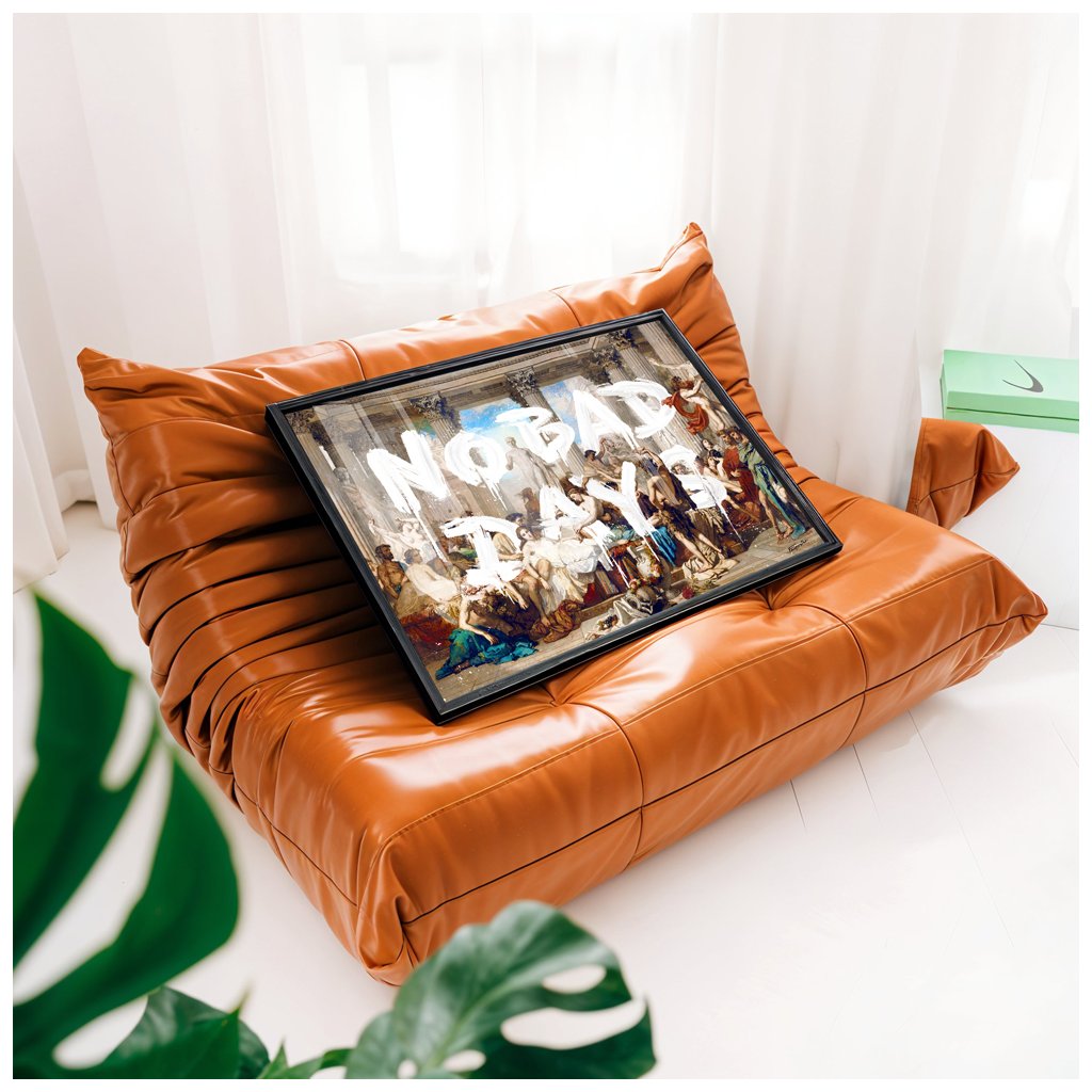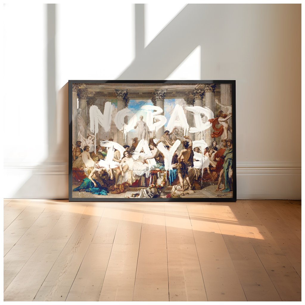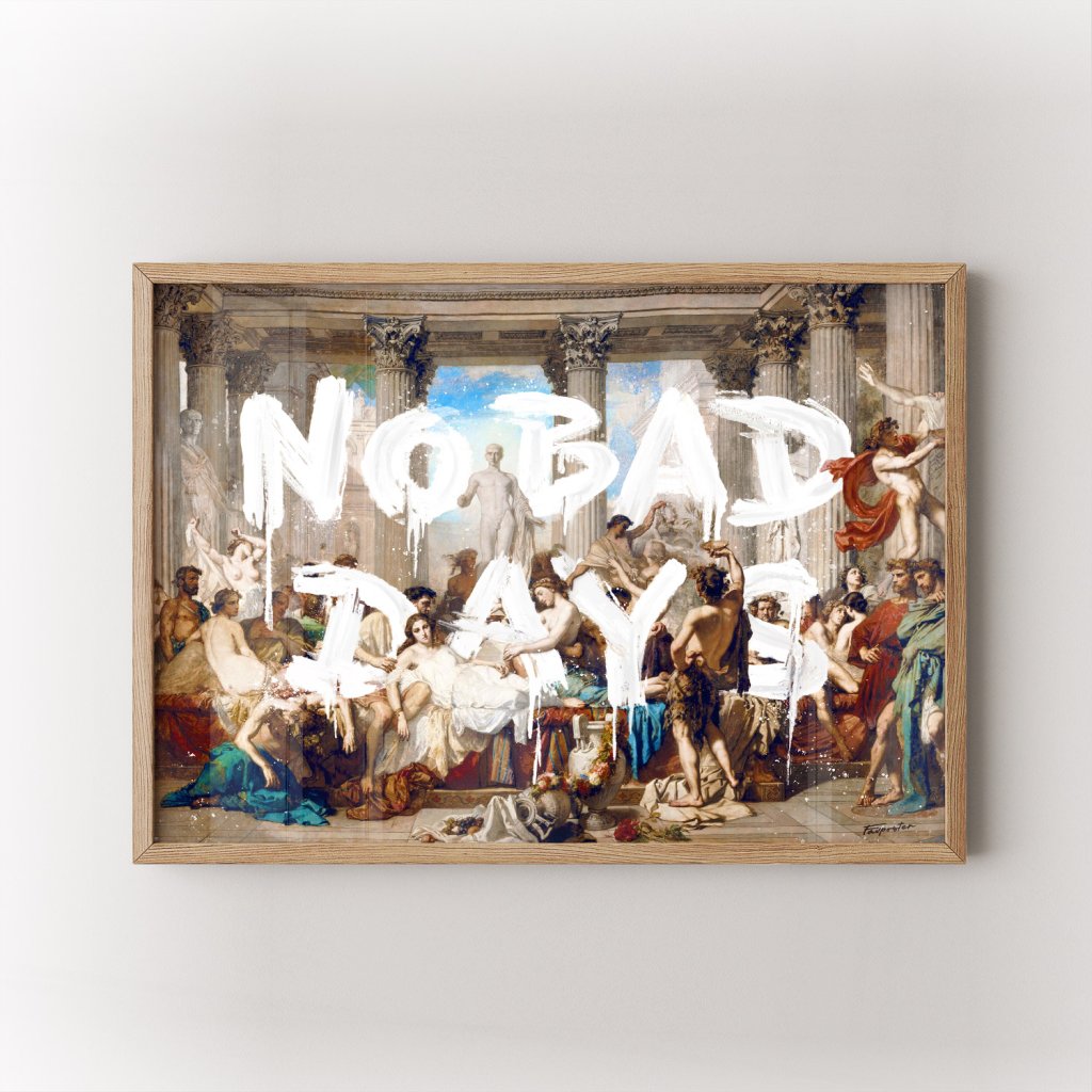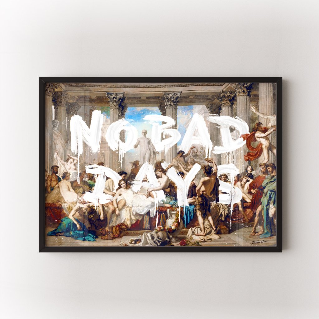 NO BAD DAYS – protože život je příliš krátký na negativní energii. Tenhle plakát je manifestem dobré nálady, vděčnosti a pozitivního mindsetu. Kombinuje klasické umění s drsnou motivací dnešní doby a připomíná, že každý den může být skvělý, když ho za takový zvolíš 💥