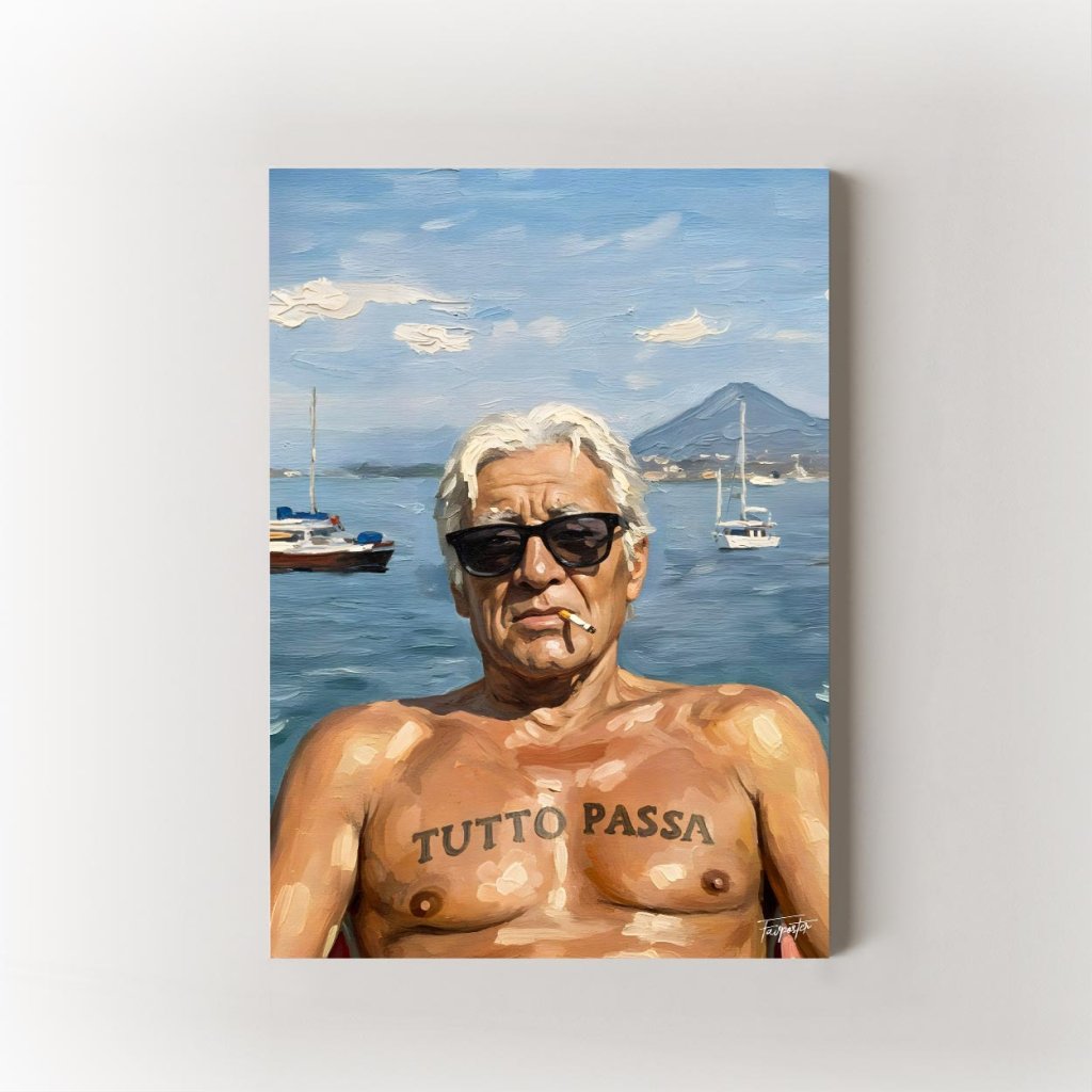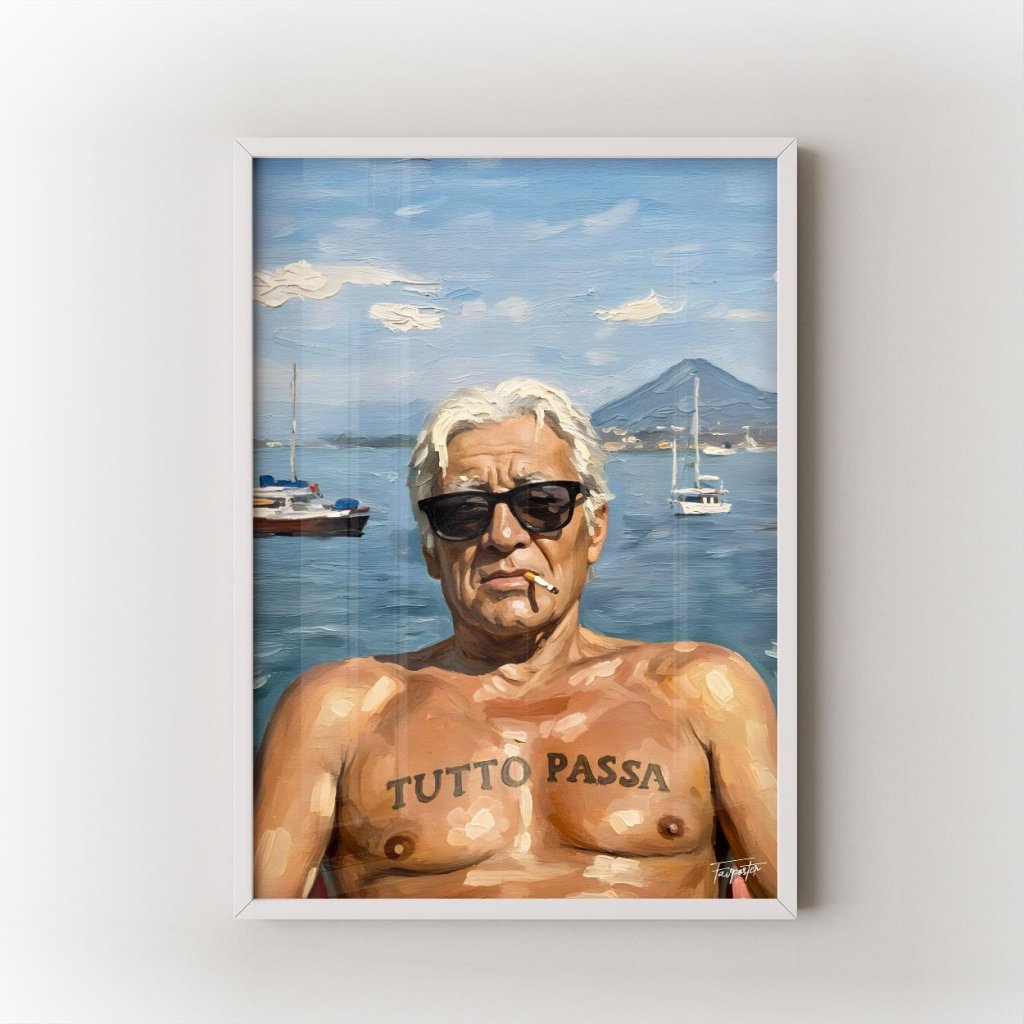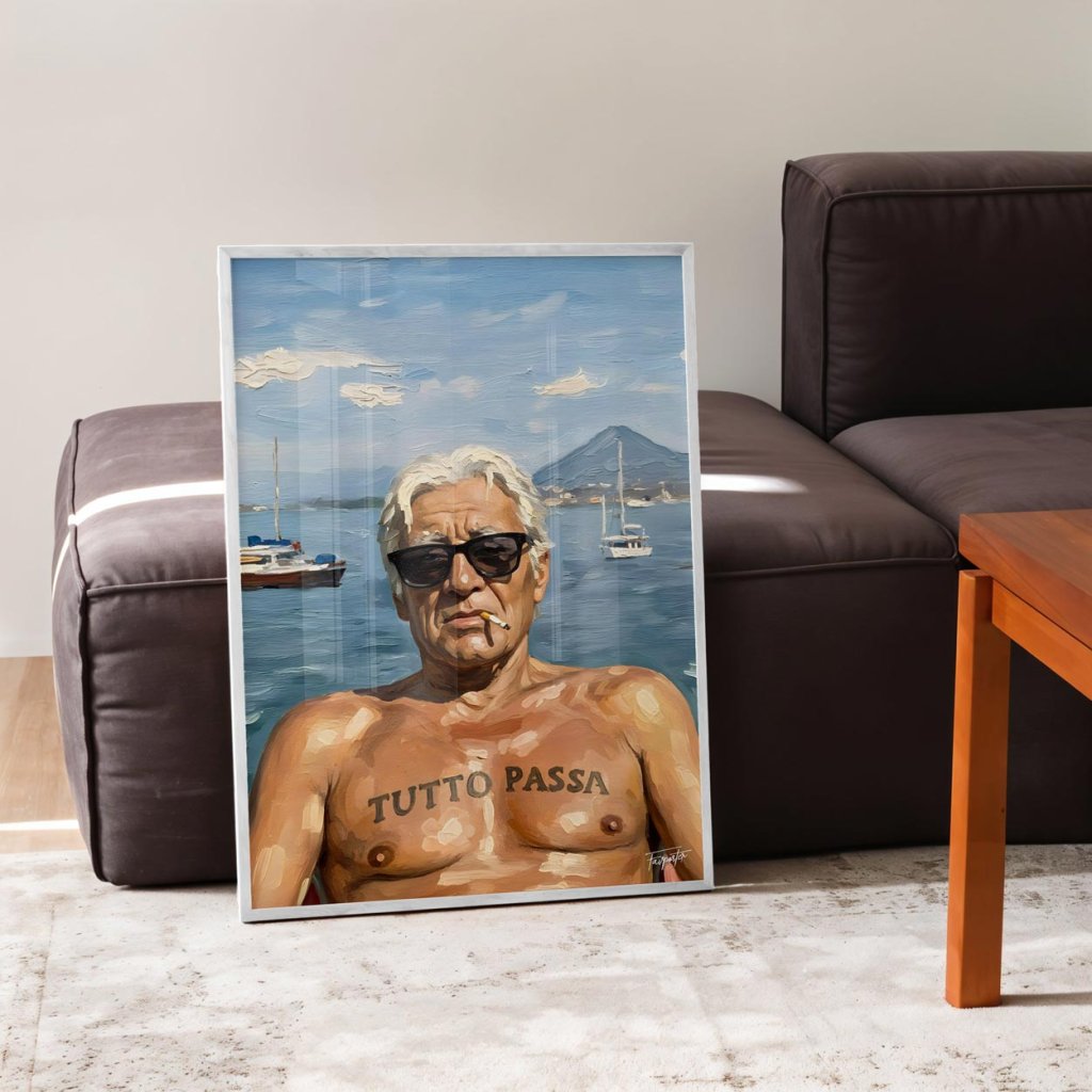 Plakát „Tutto Passa“ nese v sobě filozofii – užívat si života, i když vše pomíjí. Fráze „Tutto Passa“ znamená „všechno pomine“ a připomíná, že čas plyne, ale styl, charizma a životní postoj zůstávají. Tento plakát kombinuje old money estetiku, lehkou rebélii a atmosféru středomořské pohody. Ideální pro ty, kdo chtějí do interiéru vnést víc než jen dekoraci – chtějí příběh a životní moudrost.